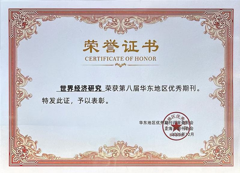 近日,由上海社会科学院世界经济研究所主办的核心学术期刊《世界经济研究》,在华东地区优秀期刊评选中脱颖而出,荣获第八届“华东地区优秀期刊”称号。这一荣誉标志着期刊在学术质量、学科影响力及出版规范等方面均获得权威认可。
